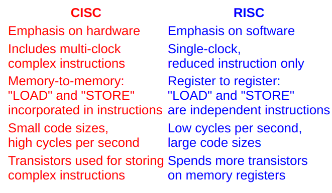 However, the RISC strategy also brings some very important advantages. Because each instruction requires only one clock cycle to execute, the entire program will execute in approximately the same amount of time as the multi-cycle “MULT” command. These RISC “reduced instructions” require less transistors of hardware space than the complex instructions, leaving more room for general purpose registers. Because all of the instructions execute in a uniform amount of time (i.e. one clock), pipelining is possible.