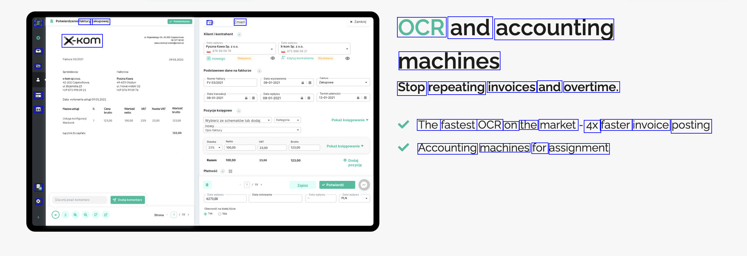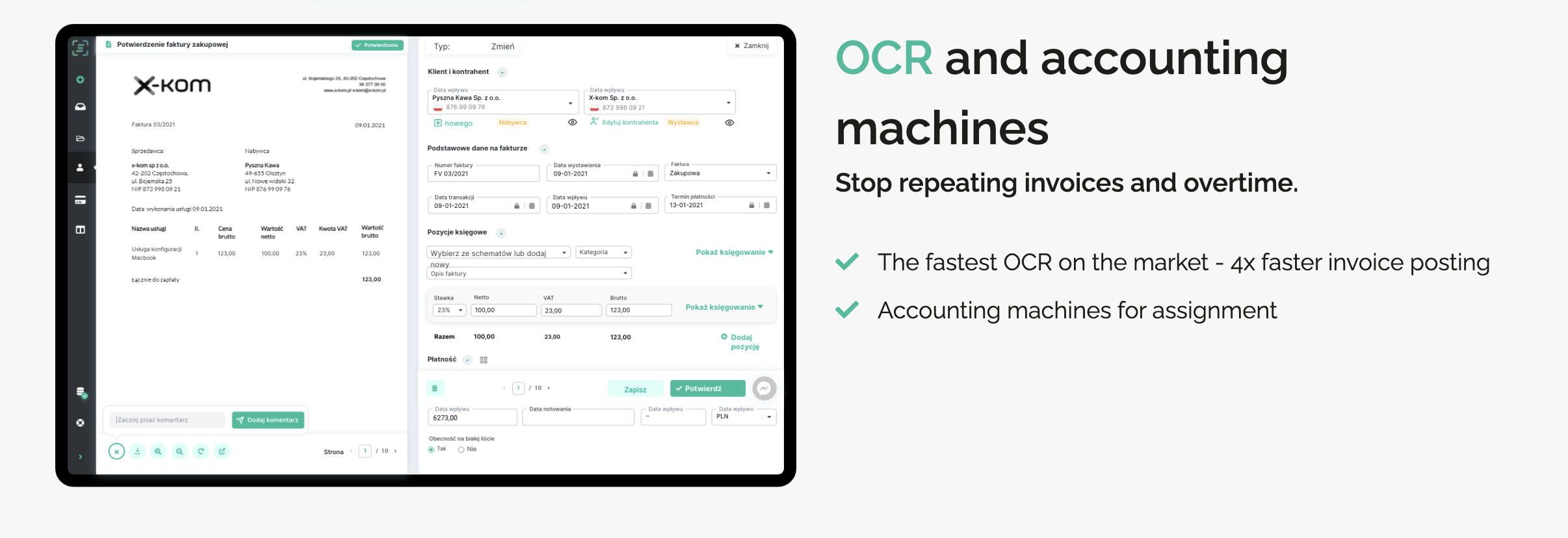 E faktury zakupowej Typ Zmien OCR and accounting X-KOm a 0 machines Stop repeating invoices and overtime. la m The fastest OCR on the market 4X faster invoice posting Accounting machines for assignment E 0