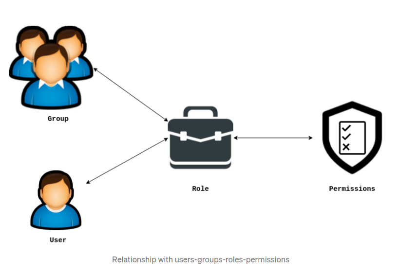 Role — A collection of rights/permissions. The roles can be assigned to groups/users. The roles assigned to a group will be transitively applied to all users in the group too. The users inherit the permissions once they work under a particular role. #