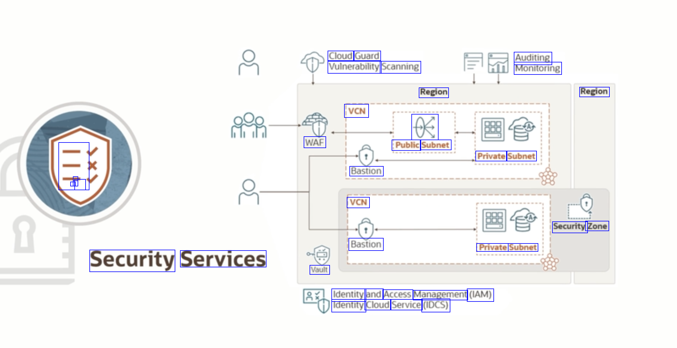 Cloud Guard Vulnerability Scanning Auditing Monitoring Region Region VCN % WAF Public Subnet Private Subnet Bastion - - - - E VCN Security Zone Bastion Private Subnet Security Services Vault Identity and Access Management (IAM) Identity Cloud Service (IDCS)