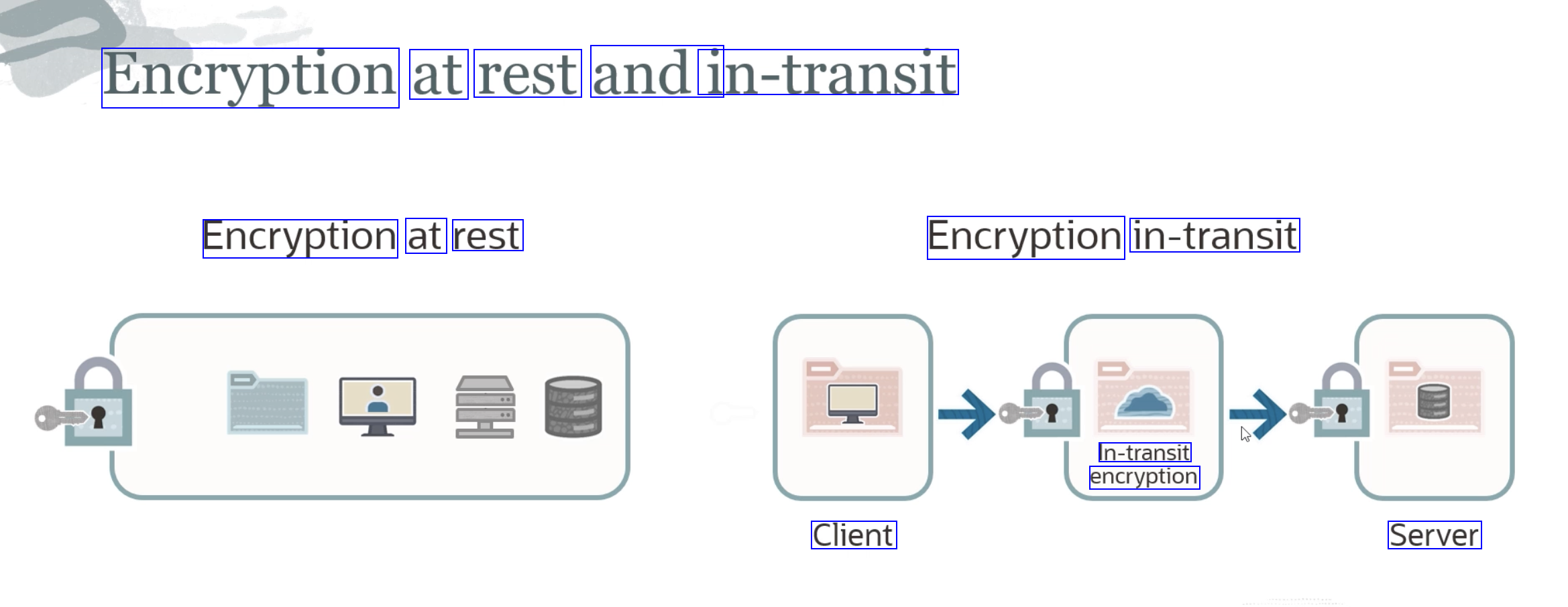 Encryption at rest andi in-transit Encryption at rest Encryption in-transit In-transit encryption Client Server