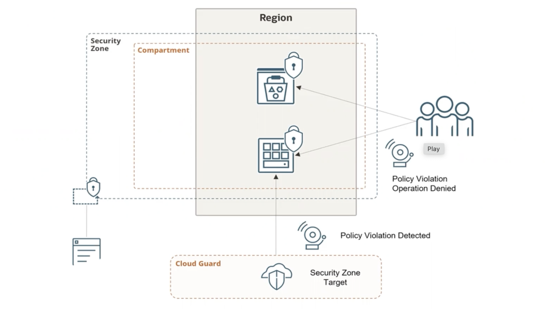 Region Security Zone Compartment O Play Policy Violation Operation Denied Policy Violation Detected Cloud Guard Security Zone Target