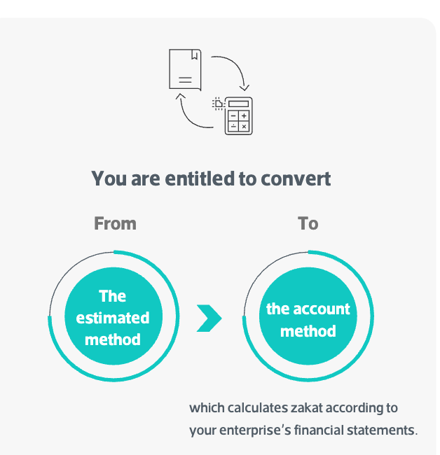 - X You are entitled to convert From To The estimated method the account method which calculates zakat according to your enterprise's financial statements.