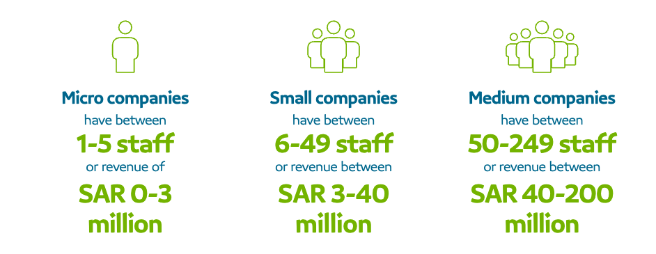 - Micro companies Small companies Medium companies have between have between have between 1-5 staff 6-49 staff 50-249 staff or revenue of or revenue between or revenue between SAR 0-3 SAR 3-40 SAR 40-200 million million million
