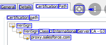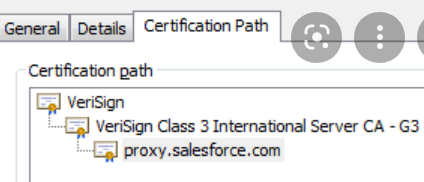 General Details Certification Path a - - - - - Certification path VeriSign VeriSign Class 3 International Server CA-G3 proxy.salesforce.com