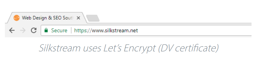 Web Design & SEO Souti X C Secure htps/www.slistream.net Silkstream uses Let's Encrypt (DVcertificate)