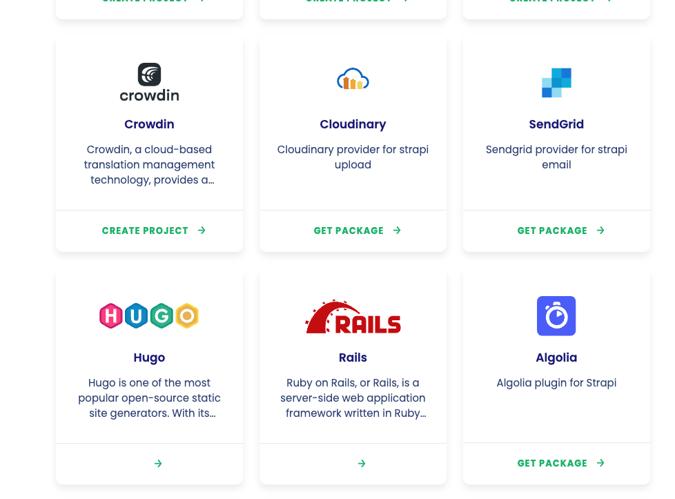 € crowdin Crowdin Cloudinary SendGrid Crowdin, a cloud-based translation management technology, provides a... Cloudinary provider for strapi Sendgrid provider for strapi upload email CREATE PROJECT y GET PACKAGE - GET PACKAGE - HUGO SRAILS - Hugo Rails Algolia Hugo is one of the most popular open-source static site generators. With its... Ruby on Rails, or Rails, is a server-side web application framework written in Ruby.. Algolia plugin for Strapi GET PACKAGE -