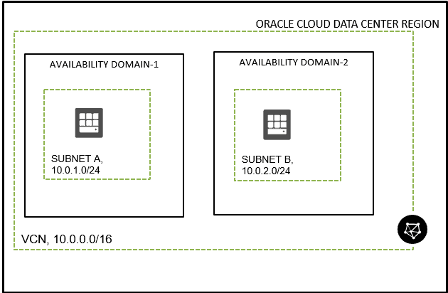 So if you see in below image We have a VCN (CIDR is 10.0.0.0/16) and in that, we have two smaller Network Subnet