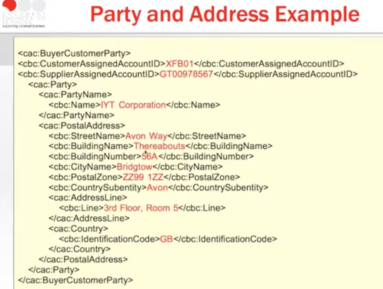 UBL schema of party