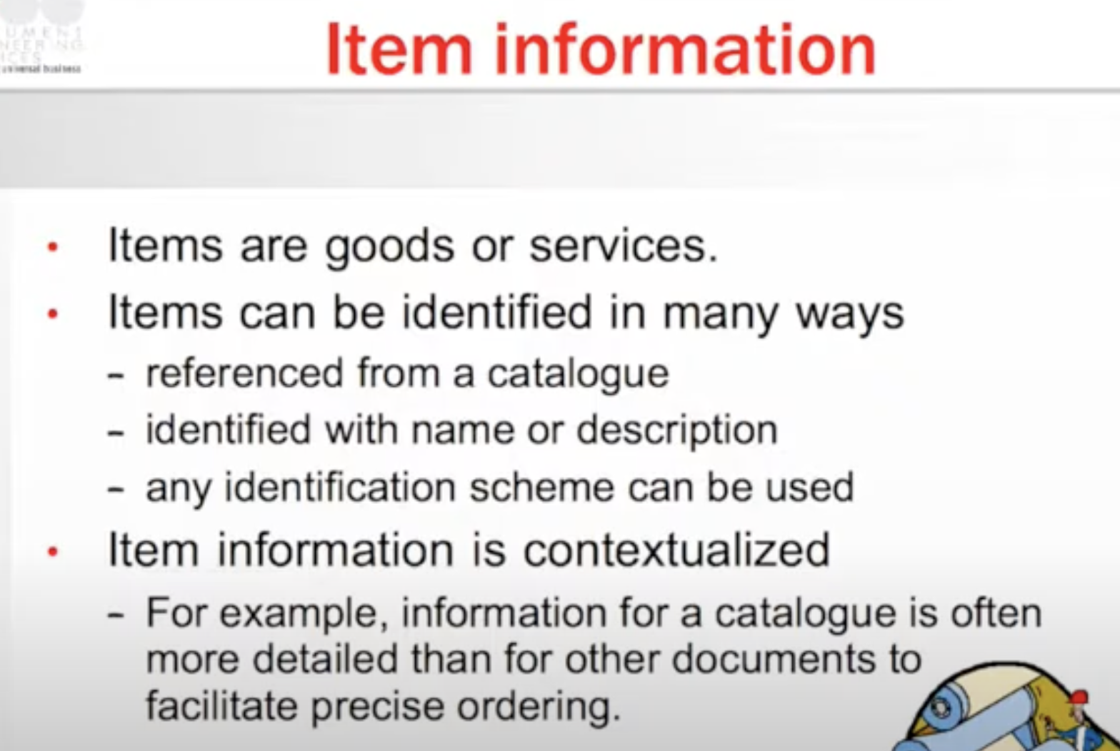 Although designed for use in business supply chains it can be (and has been) adapted for other contexts of use. This is because all the business document constructs in a UBL are drawn from a single library of reusable components. This ensures a high degree of alignment among the various parts of the UBL specification, and the assembly of XML schemas from a common element base facilitates code reuse in processing applications.