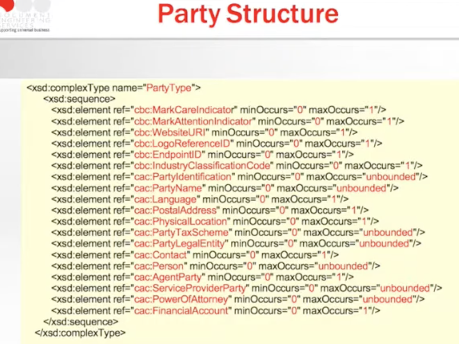 UBL schema of party