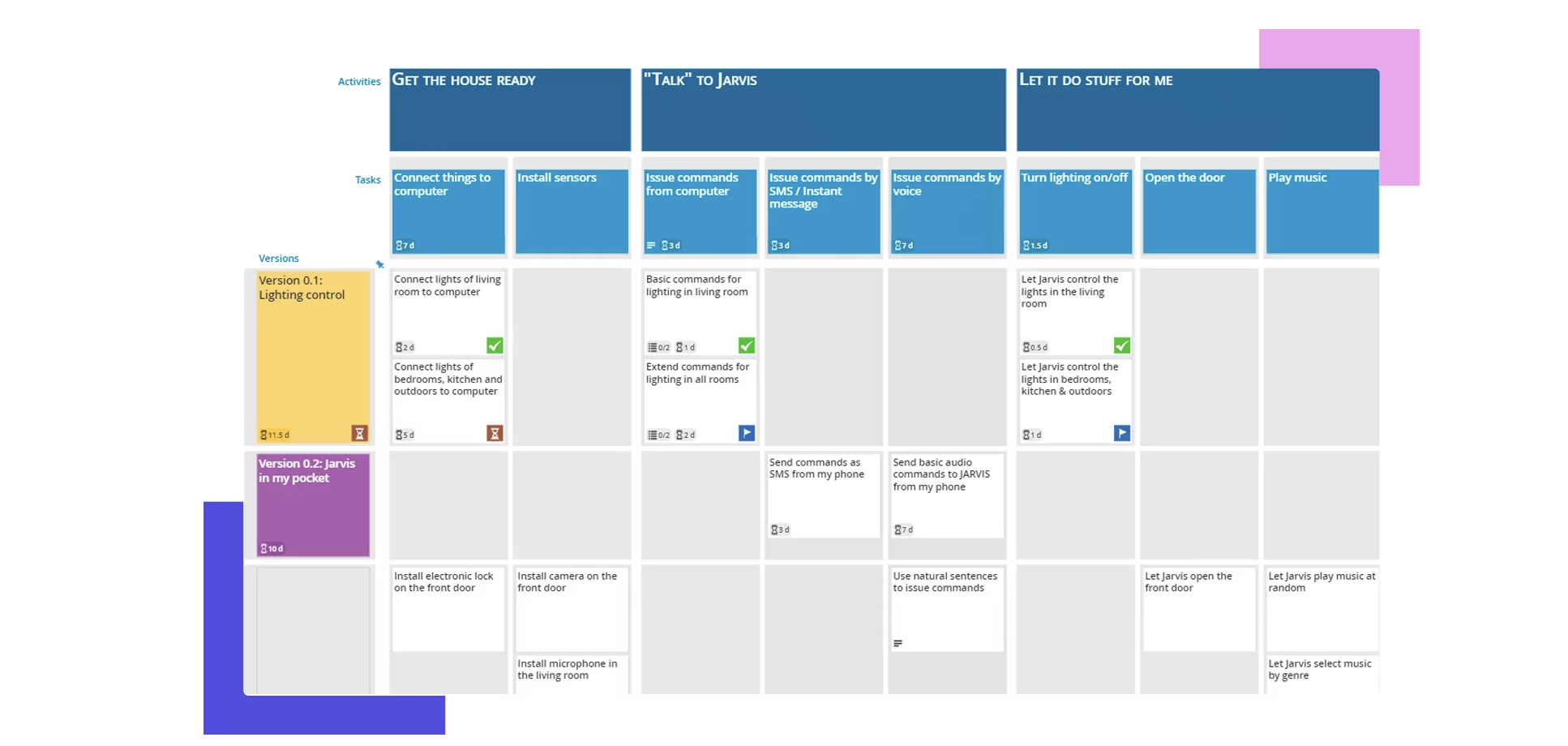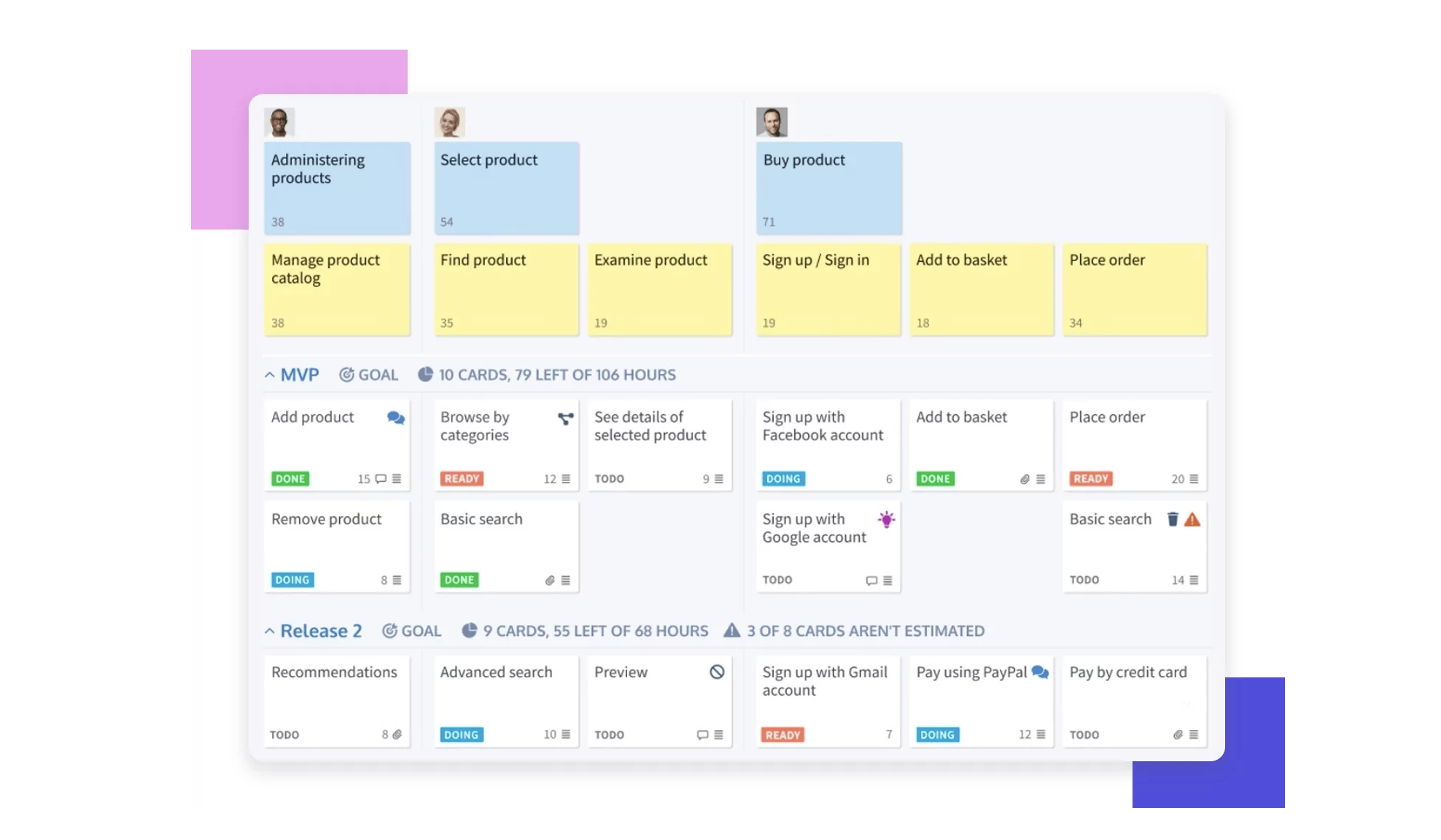Working with a list can sometimes cause a team to feel disconnected from the end goal. This is because nothing is in context. It’s also harder to get an idea at a glance of where your team is in terms of MVP completion or product readiness. It can be an attractive alternative solution for teams that are tired of working with never-ending backlog lists.