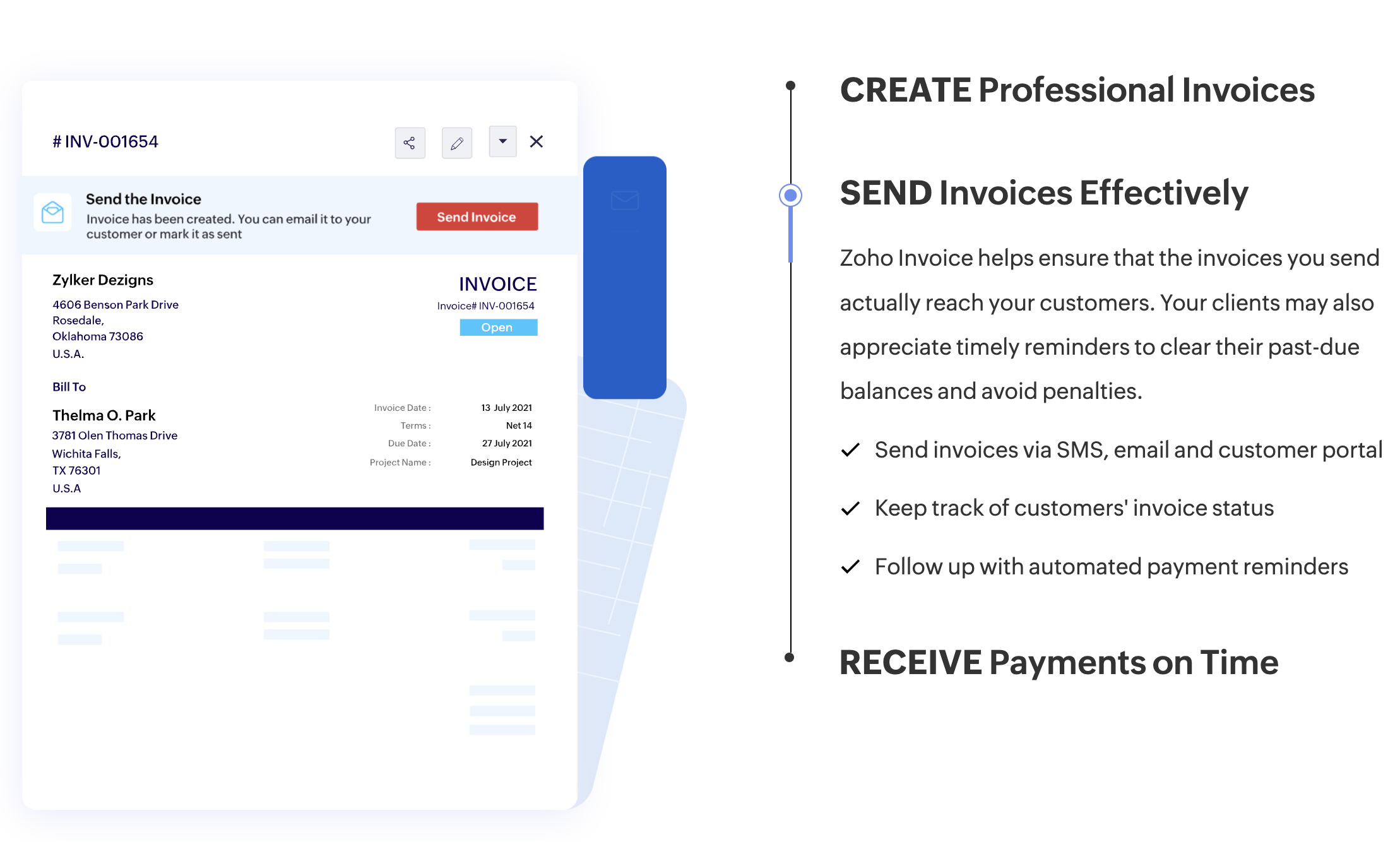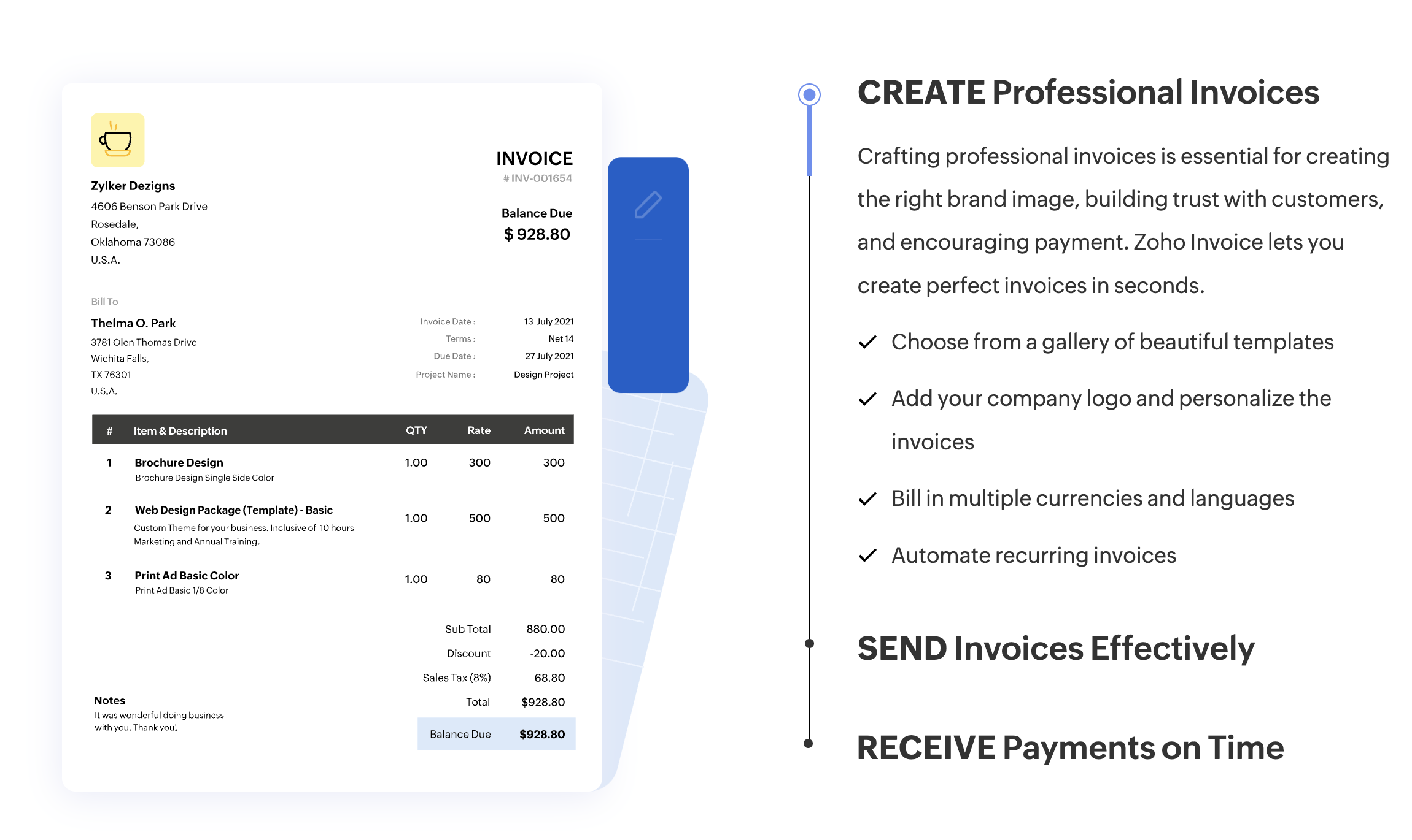 Free invoicing software for small businesses Zoho Invoice is online invoicing software that helps you craft professional invoices, send payment reminders, keep track of expenses, log your work hours, and get paid faster—all for free! Andriod app Zoho invoice and billing